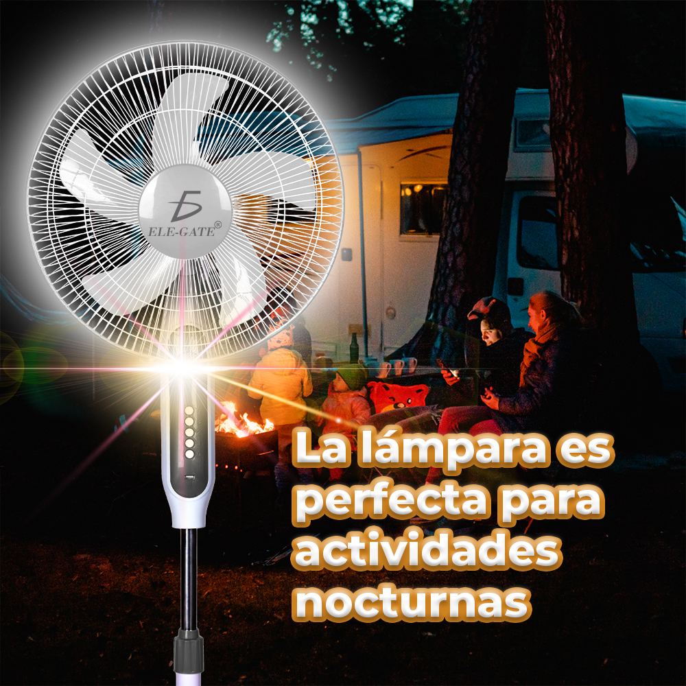 - Diseño portátil y resistente: El ventilador tiene un diseño resistente y duradero, lo que lo hace adecuado para uso en exteriores. Además, es lo suficientemente ligero como para ser fácilmente transportable, permitiendo a los usuarios llevarlo consigo a cualquier lugar donde se necesite una ventilación o iluminación adicional.