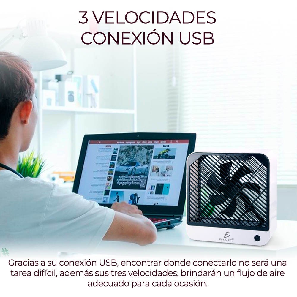 Se conecta mediante USB  así que lo puedes llevar al lugar que desees, te refrescara de inmediato en cuanto lo prendas. Cuenta con 3 niveles de velocidad para que lo ajustes a tu gusto y necesidad