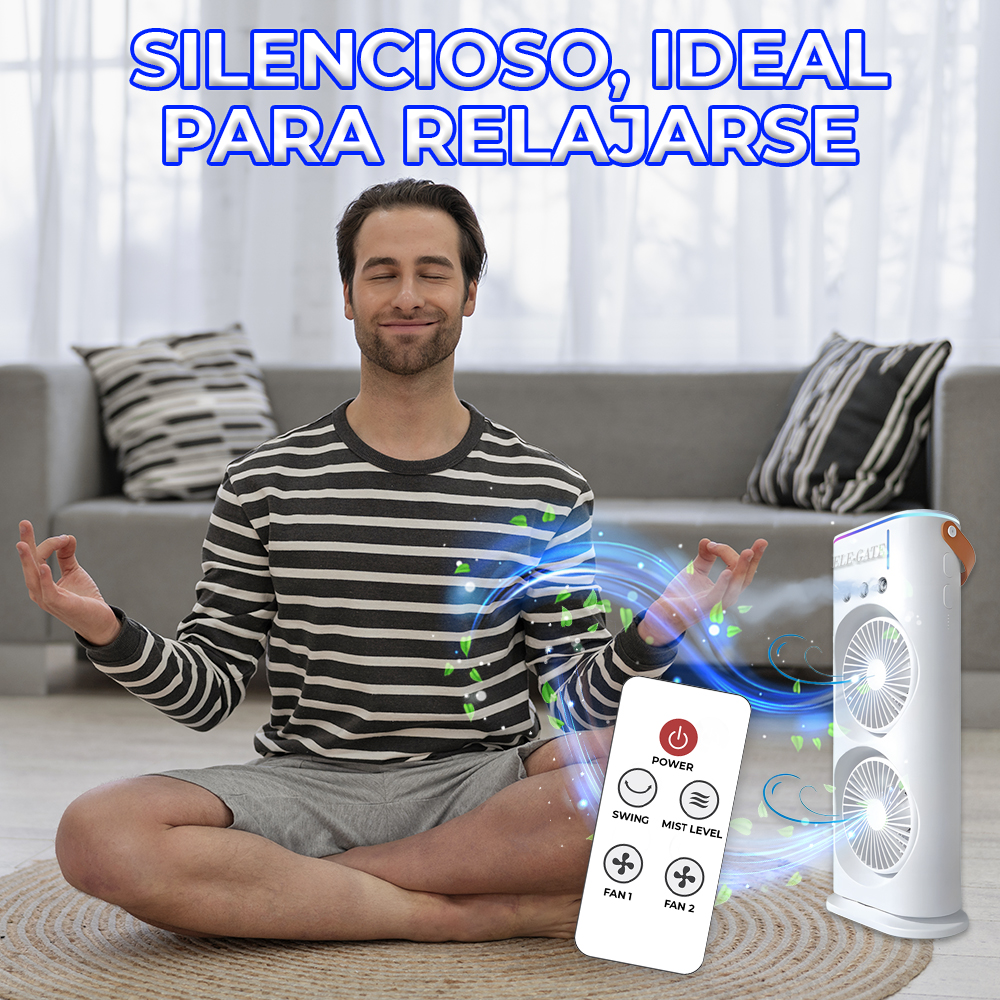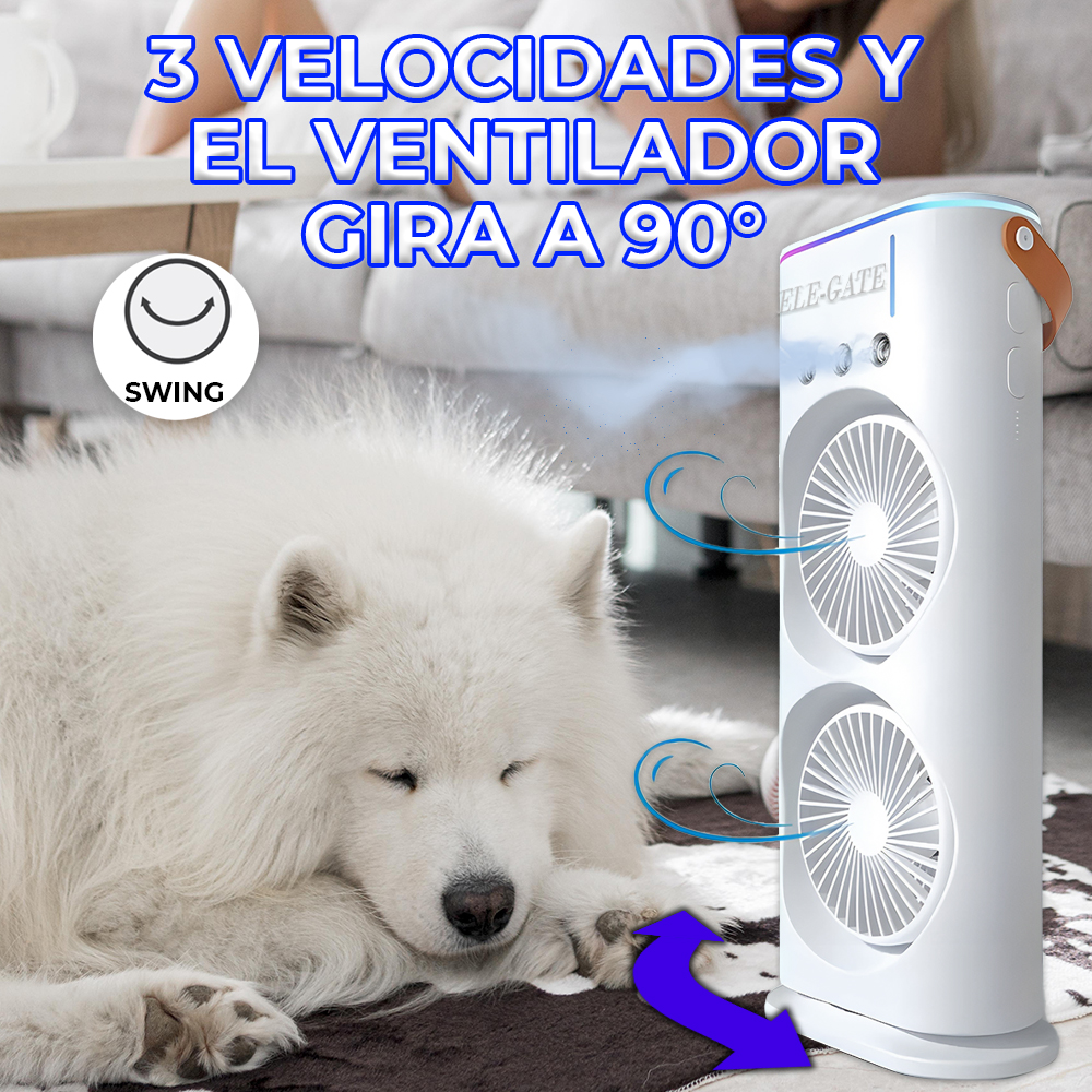 - Ventilador de torre doble con función de nebulización para un enfriamiento eficiente.